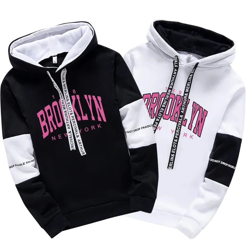 Booklyn Print Hoodies for Woman Urban Casual Fashion Tracksuit Hooded Sweaatshirt Sweatpants Girls Home Outdoor Comfort Pullover