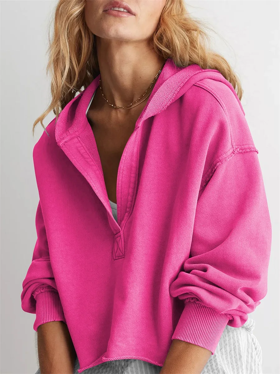 Women’s Spring Autumn Hooded Sweatshirt Long Sleeve Solid Color V Neck Hoodie